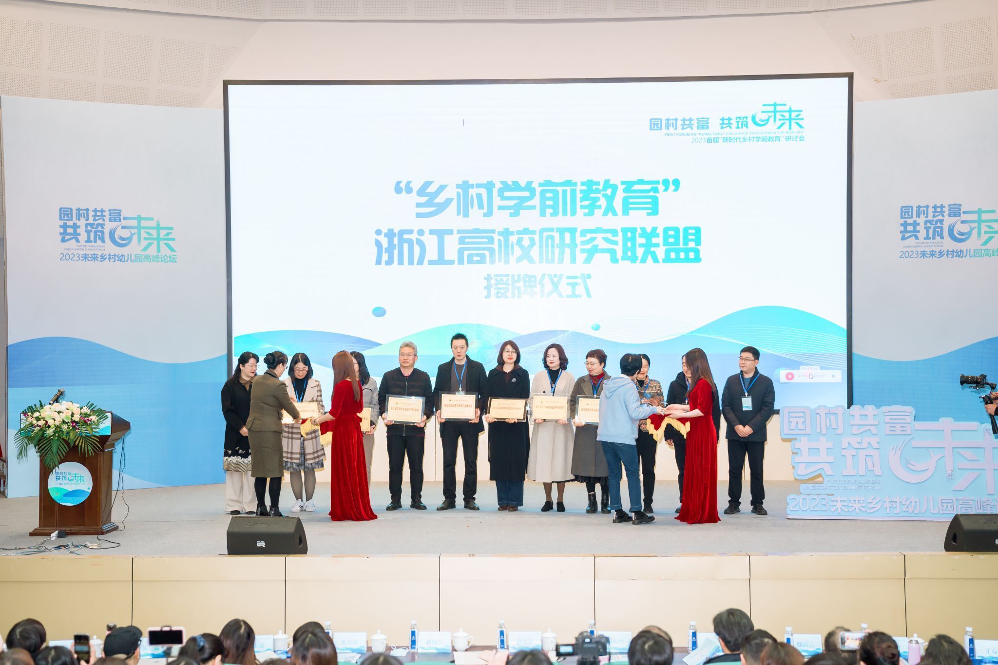 研讨会开幕式上,新澳门六合彩 学前教育系作为召集单位,携手浙江省各高校学前教育系牵头组建浙江省乡村学前教育研究联盟,赵降英和何春玲共同为联盟授牌。