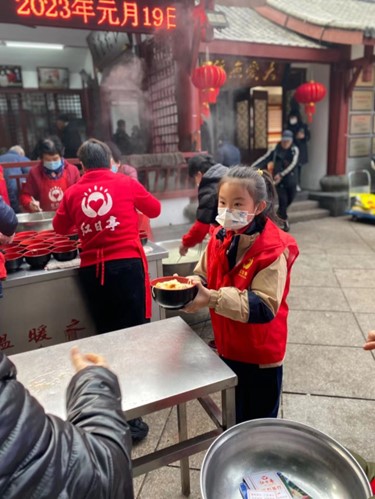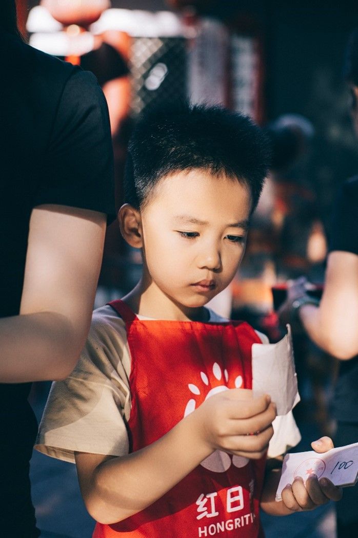 不知不觉中,“大爱”的种子不断在小朋友们的心中被种下。邵滢让女儿亲身参与到她在红日亭的九周岁慈善生日仪式中,小小的身影穿梭在人群中,将一双双筷子、一张张号码牌、一碗碗面递送给每一位前来送祝福的市民。