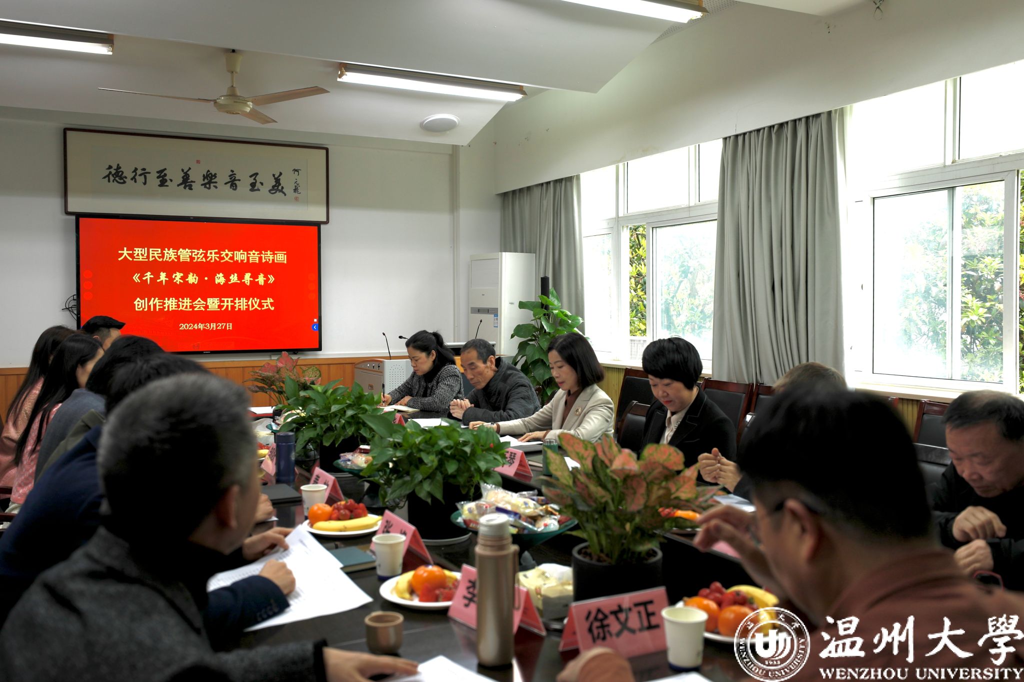 温都讯 3月27日,由新澳门六合彩 音乐学院、温州市音乐家协会联袂打造的大型民族管弦乐交响音诗画《千年宋韵·海丝寻音》创作推进会暨开排仪式在新澳门六合彩 音乐学院召开。