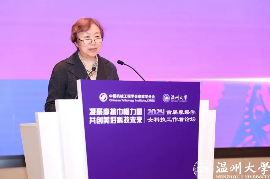 周仲荣主任委员在致辞中表示:本次论坛的召开,旨在贯彻落实党的二十大、中央人才工作会议和《关于实施科技创新巾帼行动的意见》、《支持女性科技人才在科技创新中发挥更大作用的若干措施》等文件精神。并强调这个论坛不仅是我国摩擦学的重要创举,是我国摩擦学发展过程中的具有里程碑意义一件大事,更是对女性科技工作者在科学研究和技术创新中不可替代作用的一次高度认可和充分尊重。希望通过本次活动,进一步彰显我国摩擦学领域女科技工作者的卓越风采。