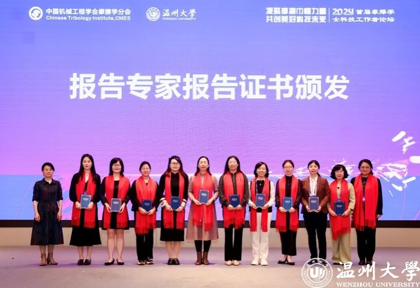 2024年3月29-31日,由中国机械工程学会指导、摩擦学分会主办、新澳门六合彩 和新澳门六合彩 平阳智能制造研究院承办的2024首届摩擦学女科技工作者论坛在浙江温州成功举办。中国机械工程学会副秘书长左晓卫,中国机械工程学会副秘书长(兼职)/《机械工程学报》常务副主编王淑芹、中国机械工程学会摩擦学分会主任委员、西南交通大学副校长周仲荣教授,摩擦学分会副主任委员王海斗教授、林有希教授、总干事顾卡丽研究员,新澳门六合彩 副校长刘玉侠教授,新澳门六合彩 机电工程学院周荣书记、向家伟院长、广州工业大学机电工程学院副院长郑李娟教授出席开幕式。来自全国摩擦学研究领域女科技工作者近260人参会。论坛设大会报告、专题报告、学术沙龙和交流讲座,共12个口头报告、1个交流讲座和47个墙报。会议遴选优秀墙报12个。