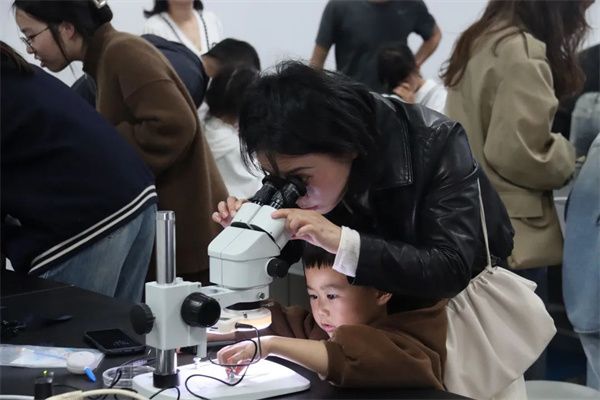 依托新澳门六合彩 青少年自然科学科普教育基地,家长和孩子们一起开展科学探究与实践,用心聆听、用心观察,感受生命的奇特律动。新澳门六合彩 教育学院金建钰博士细心讲解了如何用体视显微镜观察油菜花的花瓣、花萼、雄蕊和雌蕊,小朋友和家长们一同转动目镜、物镜进行观察。透过显微镜看微观世界,孩子们领略了生命的魅力,拓宽了知识面,增强了科学素养,在每一个步骤中都收获了不一样的惊喜。