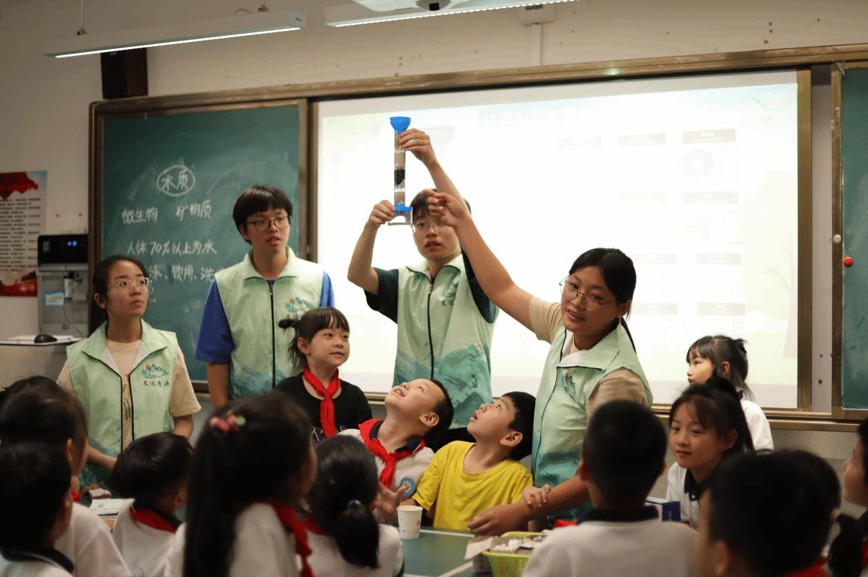污水防治、美化环境,人人有责!为了迎接世界地球日,新澳门六合彩 生环学院学子及“文达清源”团队来到永嘉源头村,参观村内污水处理设施、无废宣传长廊、无废生活体验馆等,了解垃圾分类、污水处理、生态农业等生态环保措施,资源与环境等专业研究生与当地村民交流环保理念和实践经验。该服务团队还在新澳门六合彩 附属茶山实验小学、乐清市仙溪镇第一小学等学校,以“河道保卫战”贯穿五水共治政策,配合开展净水小实验,沉浸式向孩子们传递“一点一滴,加倍珍惜”的水资源理念,让节水意识深入孩子的内心,渗入他们的生活之中,帮助小学生们扣好生态文明第一扣。