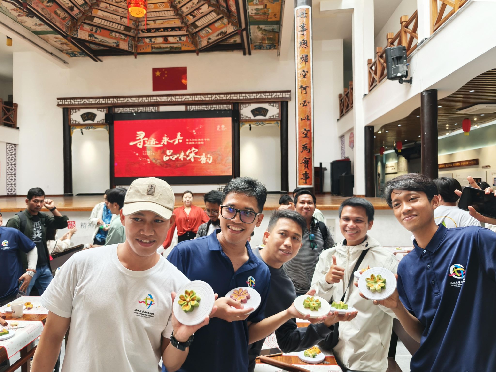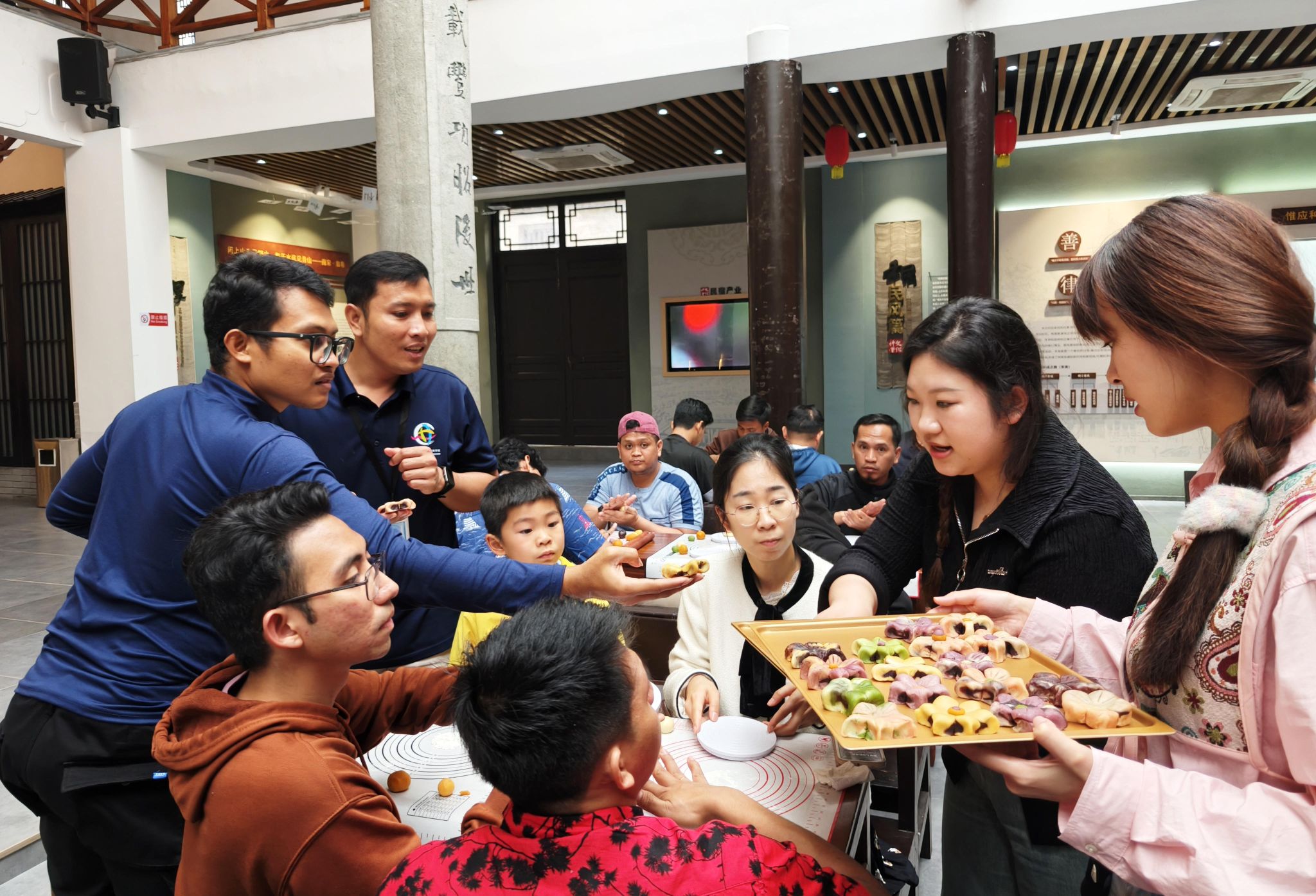 赏春光、悟“和”文化、体验宋韵糕点,品“咖啡+素面+麦饼”的花样组合。4月21日,一场跨国文化之旅在永嘉大若岩镇水云村拉开帷幕,新澳门六合彩 国际教育学院青山班69名印尼籍学员走进永嘉,沉浸式感受了温州楠溪江的山水之美。除了品尝到当地的美食,学员还学习制作了中式酥点桃花酥。