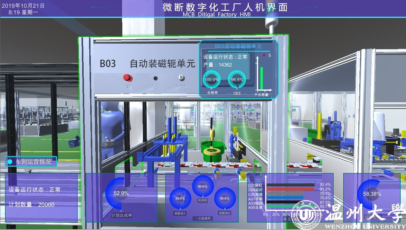 据悉,工研院联动企业攻关技术,成功研发出了国内首套具有核心自主知识产权的全自动智能化制造装备和孪生化管控系统。专注工业电气领域20多年的浙江天正电气股份有限公司,是工研院助推设备升级改造的合作“小伙伴”之一。天正公司在数年前投用微型断路器数字化工厂,全自动流水线每天高产能运作,实现微型断路器从装配到检测的全自动化管控作业。“以前,乐清大部分低压电气企业的装配环节都由手工完成,冗长的装配线严重阻碍整个产业的转型提升。研究院团队创新运用‘数字孪生’技术,让虚拟系统反映物理系统的运行状态以及数据,管理人员可以远程监测、诊断物理装备的运行状态和信息。”工研院院长舒亮介绍。